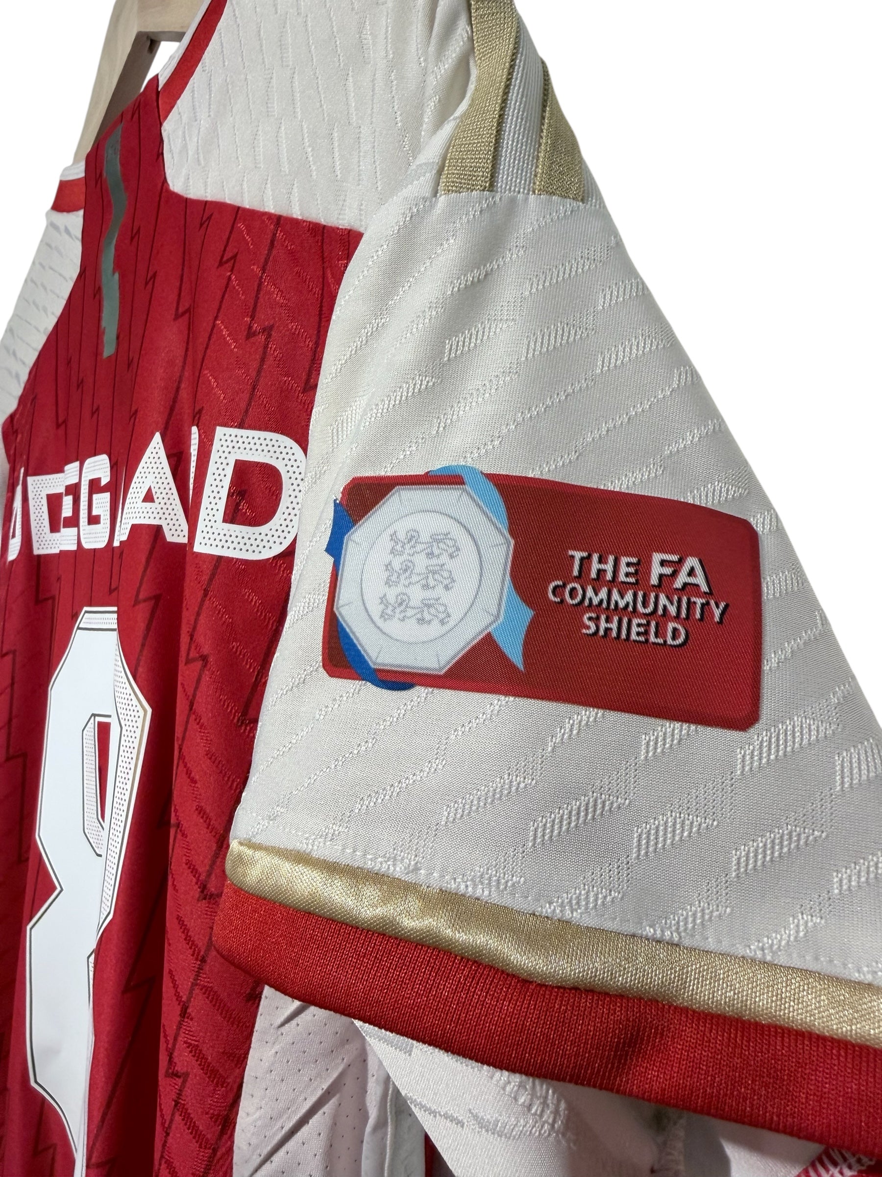 Arsenal 2023/24 Hjemmetrøje - Martin Ødegaard Player Version. Original hjemmetrøje fra Arsenals 2023/24-sæson med Martin Ødegaard tryk. Denne autentiske vintage trøje har det ikoniske røde design. Trøjen er magen til den trøje de brugt i Community Shield finalen og er med Ødegaard der scorede i straffesparks-konkurrencen