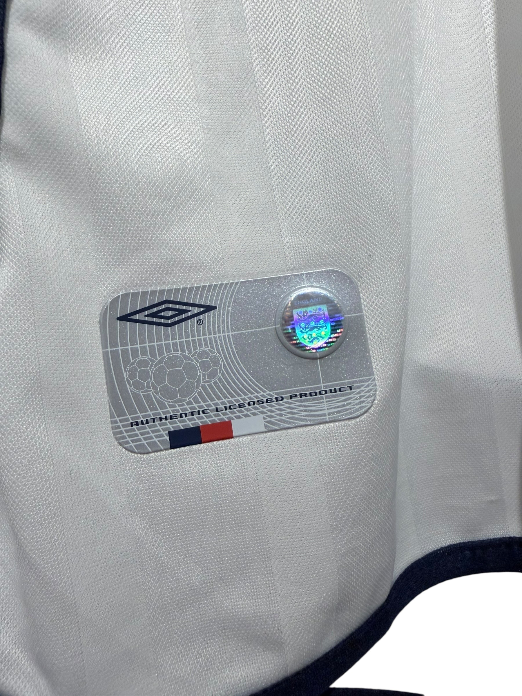 Original home shirt from England's 2002 World Cup campaign with Michael Owen print. This authentic vintage football shirt is from a historic tournament in Japan and South Korea.